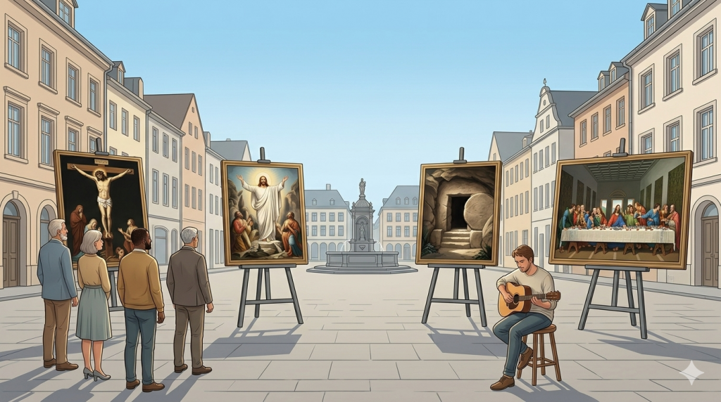 Vier bekannte Kunstwerke erzählen die zentralen Momente der Ostergeschichte – von Kreuzigung bis Auferstehung.