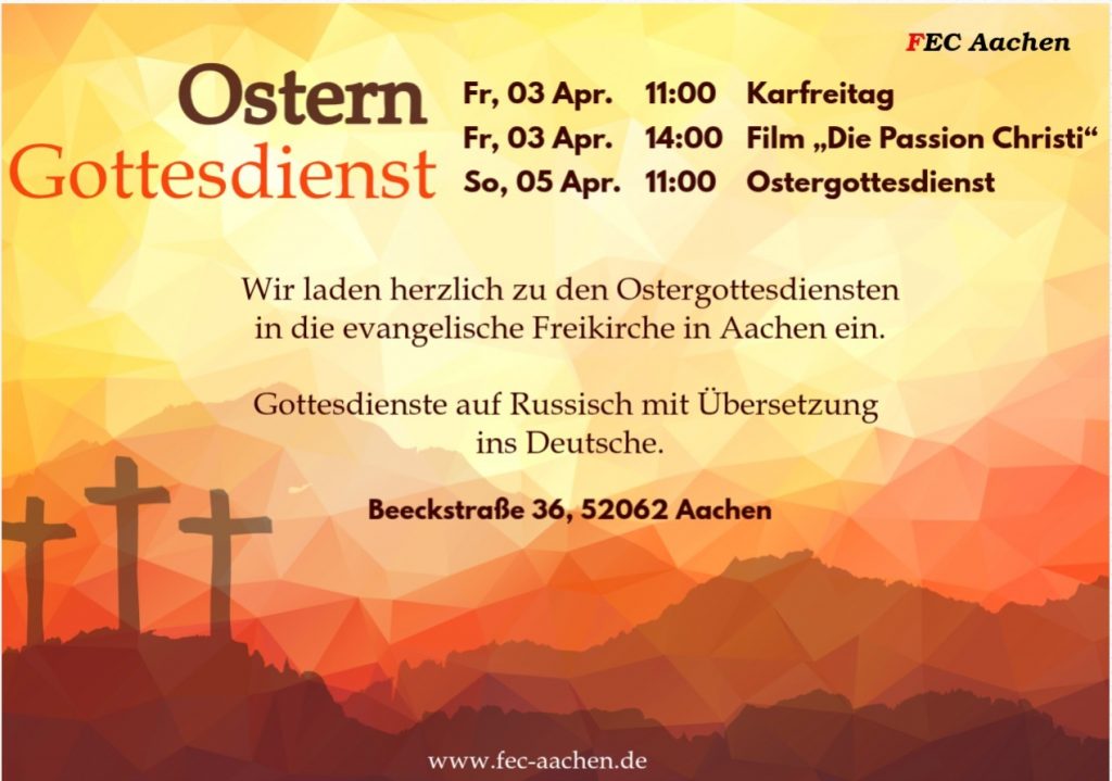 | Fr, 03 Apr. | 14:00 | Film „Die Passion Christi“ |